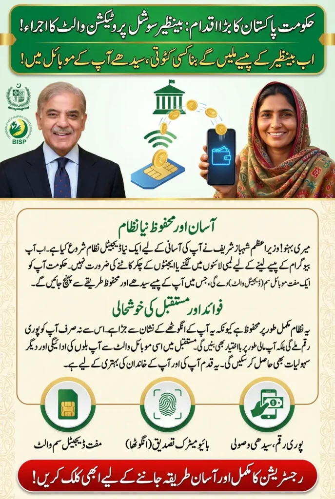 BISP 8171 Benazir Social Protection Wallet: The Benazir Social Protection Wallet has been formally launched as part of Prime Minister Muhammad Shahbaz Sharif’s digital economy vision. This initiative is designed to provide secure, efficient, and cashless financial assistance to women registered under the Benazir Income Support Program (BISP). The program marks a significant step toward modernizing social protection and financial inclusion in Pakistan. By moving away from traditional cash disbursements, the government aims to enhance transparency, reduce leakage, and empower women economically.