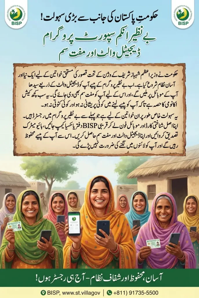 To obtain the digital wallet and free SIM, eligible women must visit their nearest BISP office or designated camp site. At these locations, trained staff guide beneficiaries through the registration process.