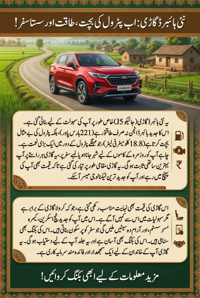 As interest in hybrid vehicles continues to grow in Pakistan, the J5 SHSHEV stands out as a practical and value-driven option for modern drivers.