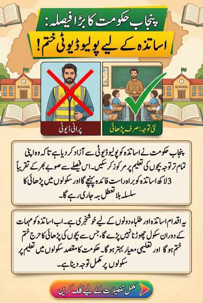The polio duty exemption for teachers is a major policy decision that will positively impact education in Punjab. By freeing 300,000 teachers from non-teaching duties, the government has taken a practical step toward improving learning environments. The long-term benefits are expected to be felt by teachers, students, and schools alike.