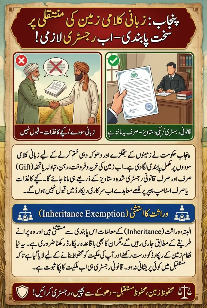 Punjab land transfer rules for sale: Punjab has introduced a strict ban on verbal land transfer to bring clarity and legal certainty to property dealings. Under the new framework, any transfer based on oral statements or informal understandings will no longer be recognized by revenue authorities. This move aims to reduce disputes and ensure that ownership changes are backed by verifiable records.