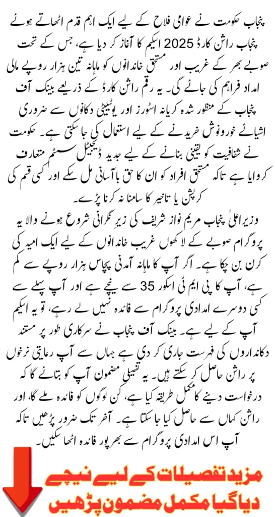 The Punjab government has officially launched the Punjab Ration Card 2025 scheme to support poor and low-income families struggling with everyday expenses. This welfare program, introduced under the leadership of Chief Minister Maryam Nawaz Sharif, aims to ensure that no family in Punjab remains deprived of essential food items amid high inflation.